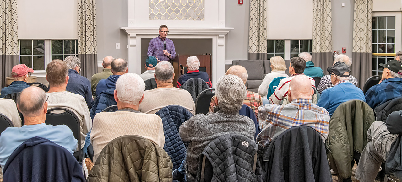 Philadelphia Inquirer sports journalist Mike Sielski entertained the men’s club with an enjoyable and informative Q&A session on November 20, 2025